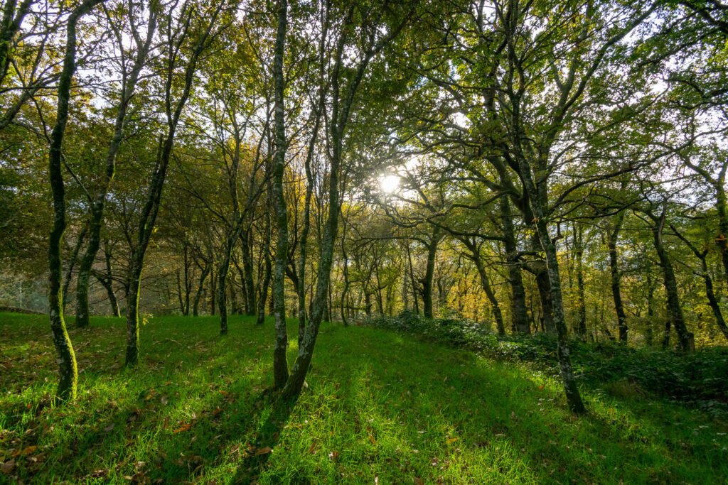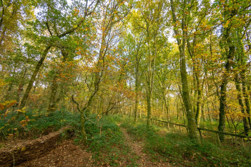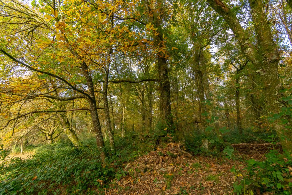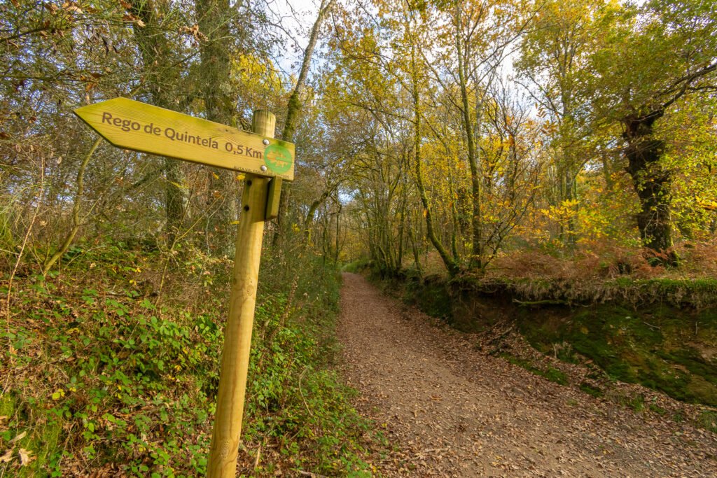 Una ruta de senderismo circular permite recorrer este enclave y observar de cerca sus valores naturales. La visita resulta especialmente recomendable en otoño, cuando el bosque ofrece un espectáculo cromático con hojas en tonos marrones, amarillos, anaranjados y ocres. En esta época también se aprecia con mayor claridad la dinámica del ecosistema, con la caída de frutos, la actividad de la fauna y la descomposición de materia orgánica que enriquece el suelo.