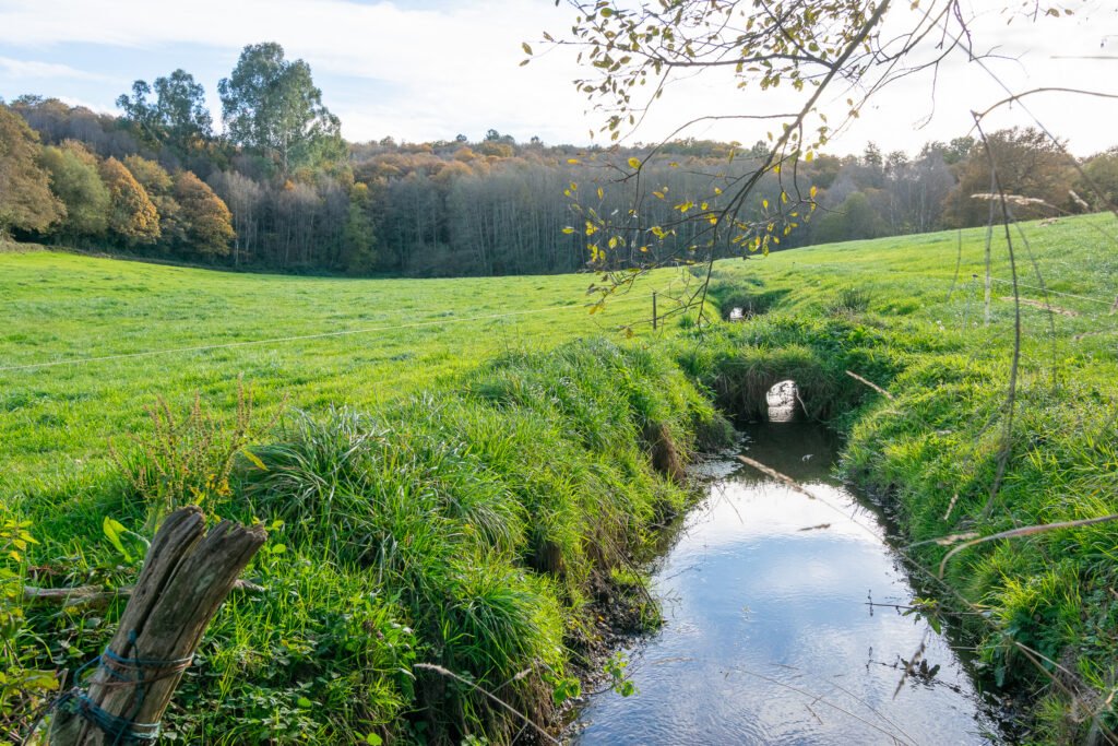 En cuanto a la geología, el terreno se caracteriza por la presencia de sustratos de pizarras y esquistos, típicos de esta zona de Galicia. Estos materiales originan suelos ácidos y ricos en materia orgánica, ideales para el desarrollo de castañares. La topografía suave, con ligeras pendientes, facilita la acumulación de nutrientes y la retención de humedad, lo que explica el gran porte de los árboles.