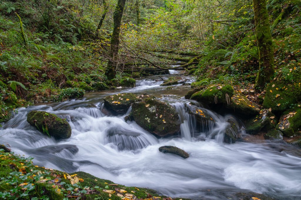 Cruzado en su mitad por el río Eume, el parque ofrece al visitante un recorrido a lo largo de cascadas, rápidos y remansos, donde el agua actúa como elemento estructurador del paisaje. Este río, de régimen pluvial, mantiene un caudal relativamente constante gracias a las abundantes precipitaciones de la zona, lo que favorece la presencia de ecosistemas riparios bien desarrollados, con alisos y sauces en sus márgenes. La calidad de sus aguas permite la existencia de especies como la trucha común y diversos invertebrados indicadores de buena salud ecológica.