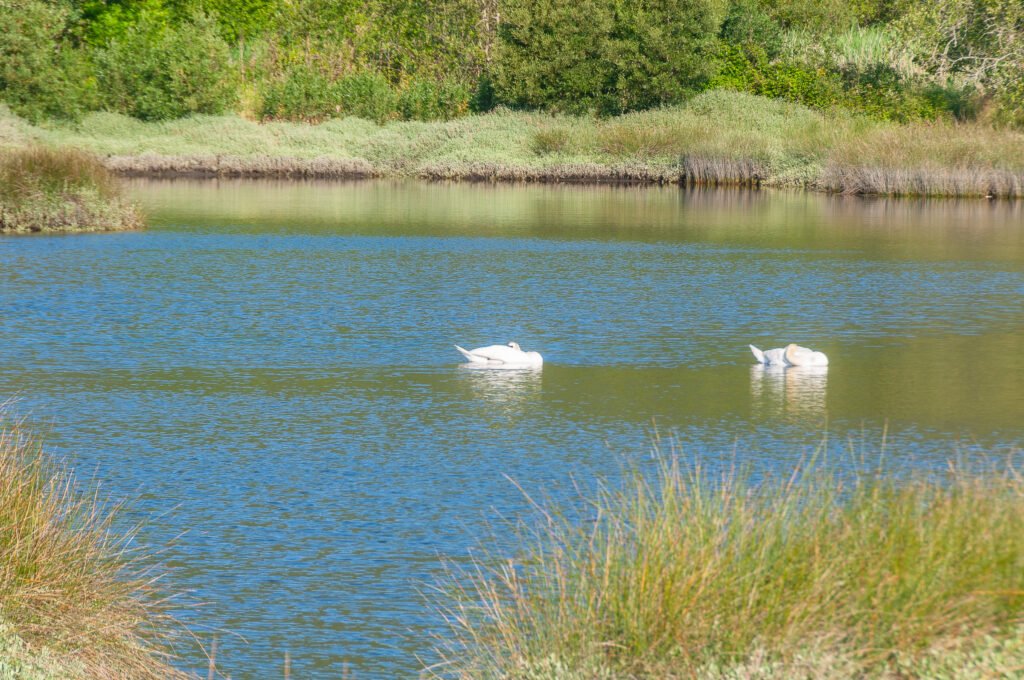 La fauna asociada es especialmente relevante, destacando la presencia de aves acuáticas que utilizan este espacio como área de alimentación, descanso y reproducción. Es habitual observar especies como el Cygnus olor, visible en la lámina de agua, así como anátidas, garzas y limícolas que aprovechan los fondos fangosos en bajamar. La riqueza en invertebrados y pequeños peces convierte estas marismas en un ecosistema clave dentro de las rutas migratorias del noroeste ibérico.