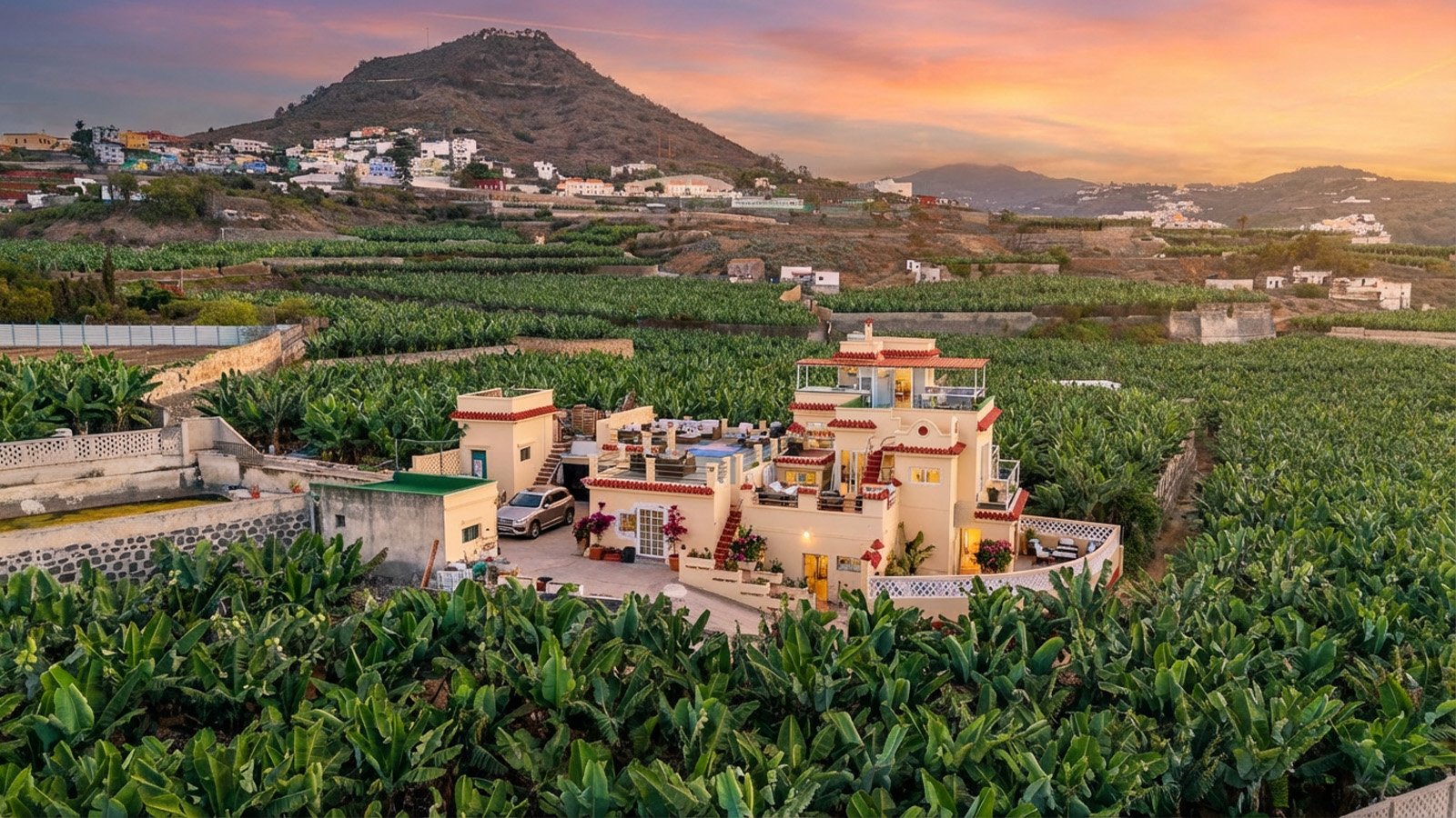 Mundocreativo mantiene una colaboración activa con la Ecofinca Arucas, un proyecto agrícola 100% ecológico situado en un enclave verdaderamente privilegiado de la isla de Gran Canaria. La finca, rodeada de extensas plantaciones de plátanos y una gran variedad de plantas exóticas, representa un ejemplo real de cómo la agricultura puede convivir en armonía con la sostenibilidad y la conservación del entorno natural.