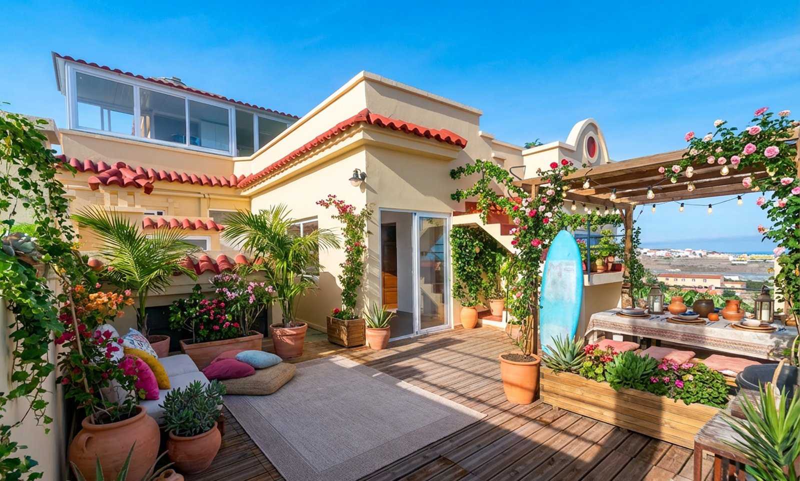 Imagen recreando una de las terrazas una vez terminada la fase de decoración exterior.